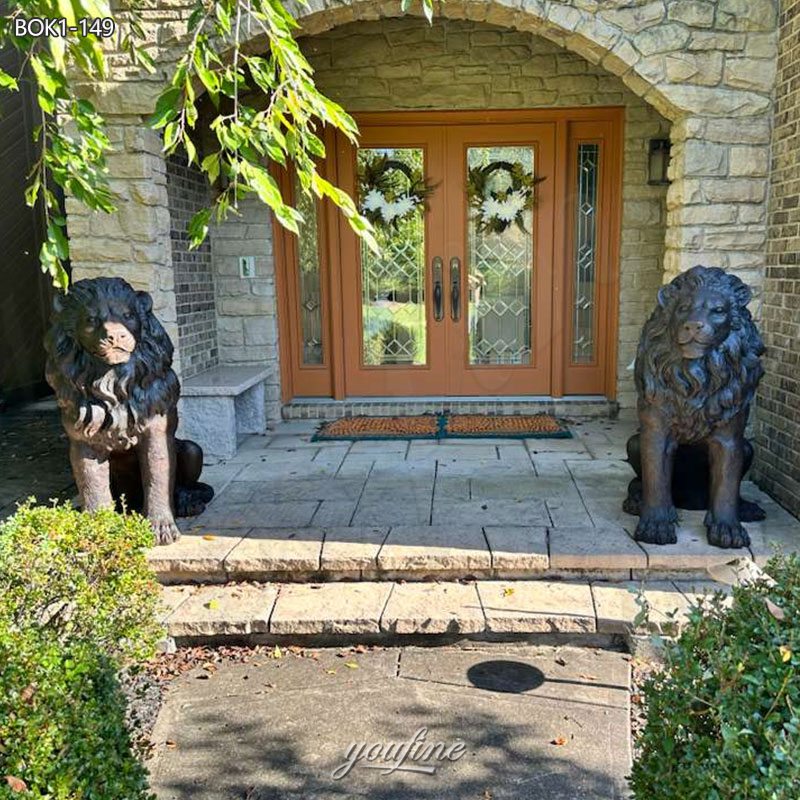 >>This pair of bronze front yard lion statues attract countless eyes with their huge size. They sit side by side on the grass, and their majestic bodies and majestic postures show endless power and dignity.