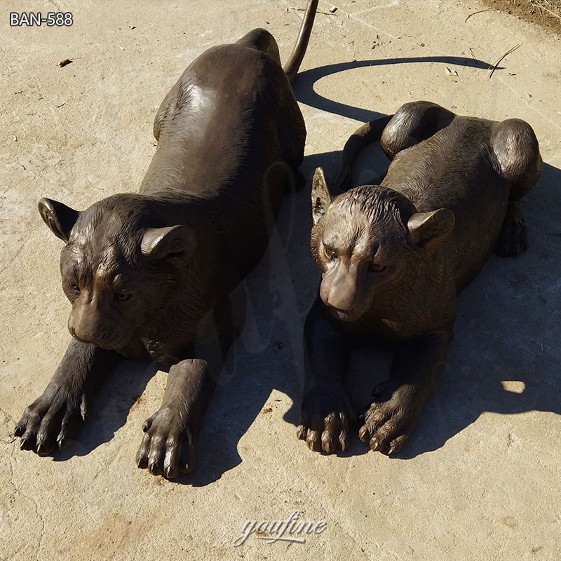 >>This lion cub sculpture is crafted using the traditional lost-wax bronze casting method, resulting in rich surface textures and exquisite details, from the soft muscle lines to the realistic paws and facial expressions, all demonstrating superb artistry. The warm bronze patina adds depth and texture, allowing the statue to become even more beautiful over time.