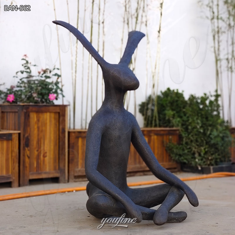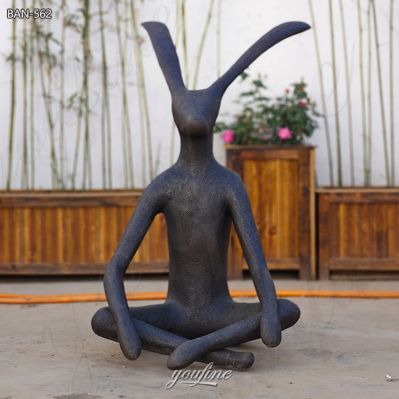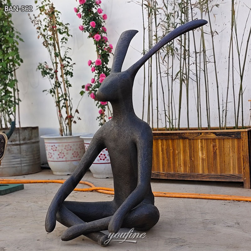 >>This abstract bronze bunny garden statue captures a pose of tranquil meditation with its elongated ears and clean, flowing lines.