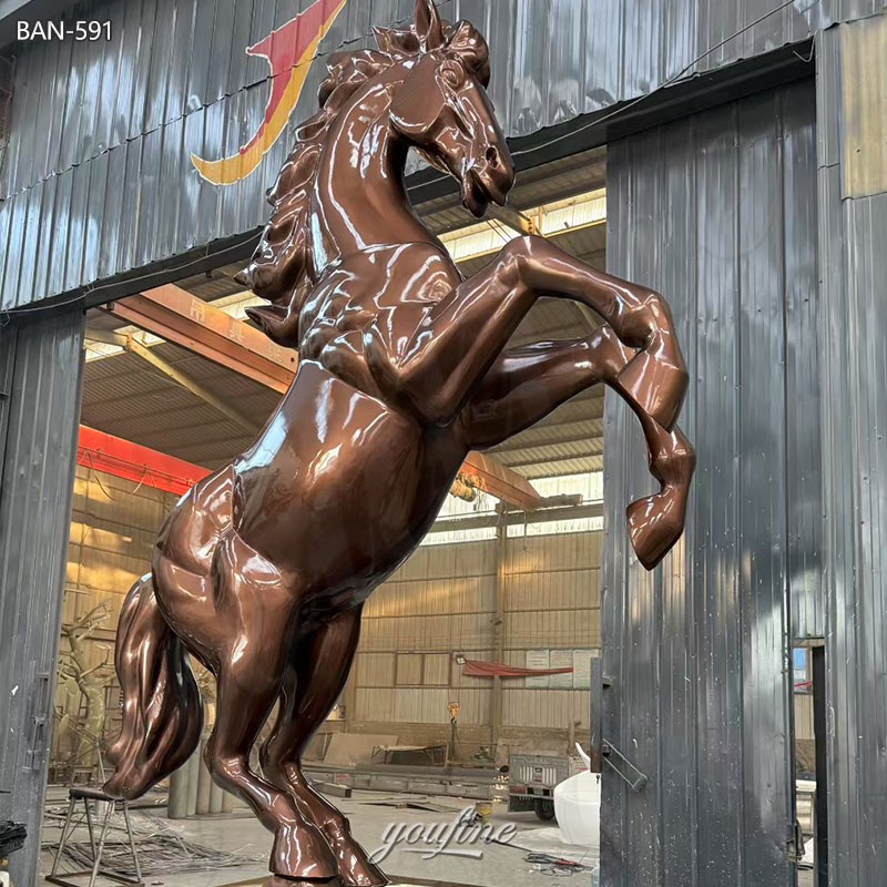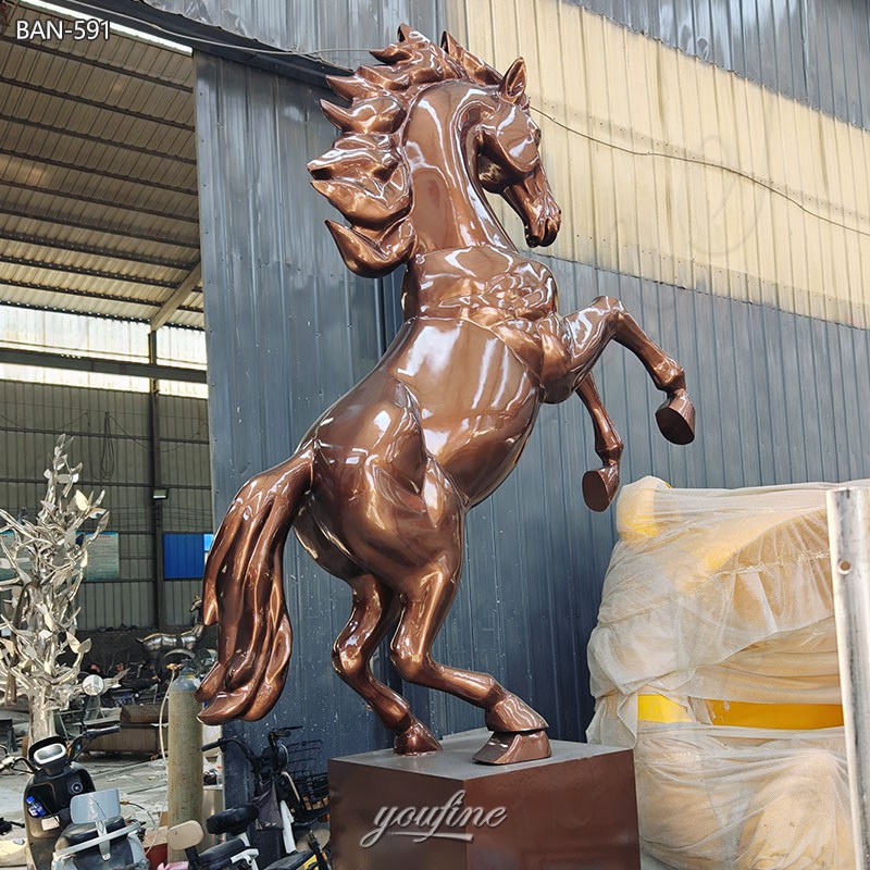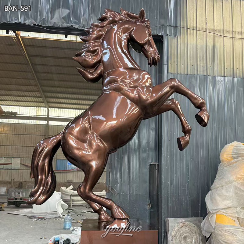 >>This copper horse statue captures the powerful beauty and dynamic movement of a rearing horse, symbolizing strength, freedom, and success.