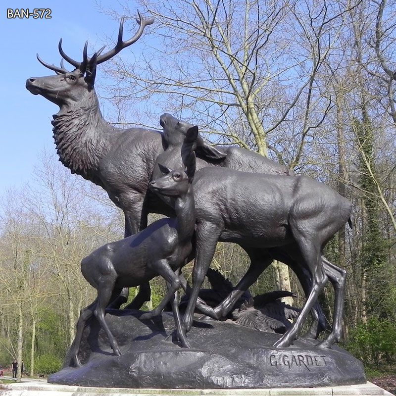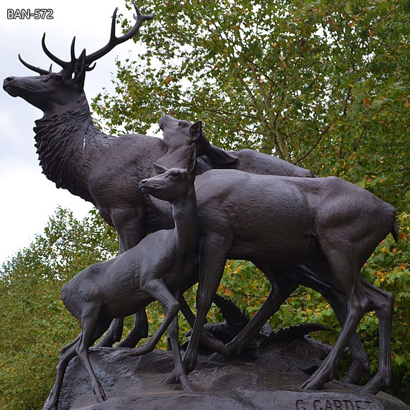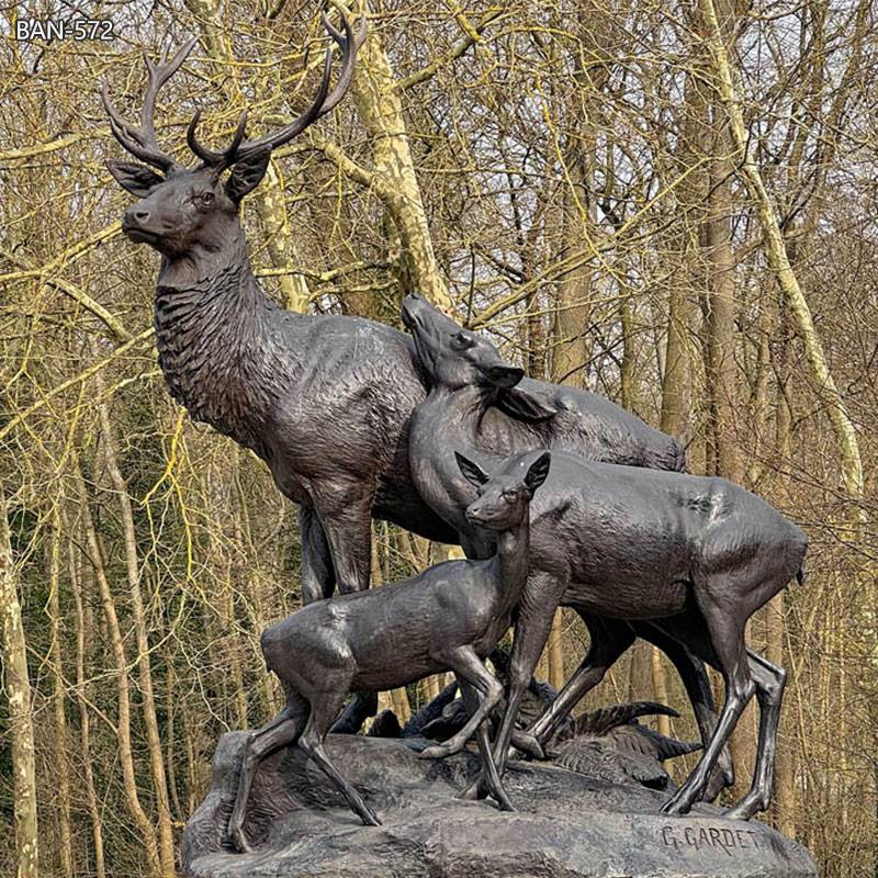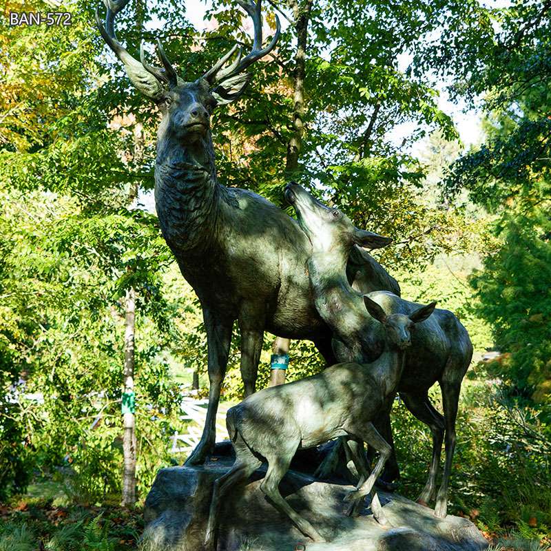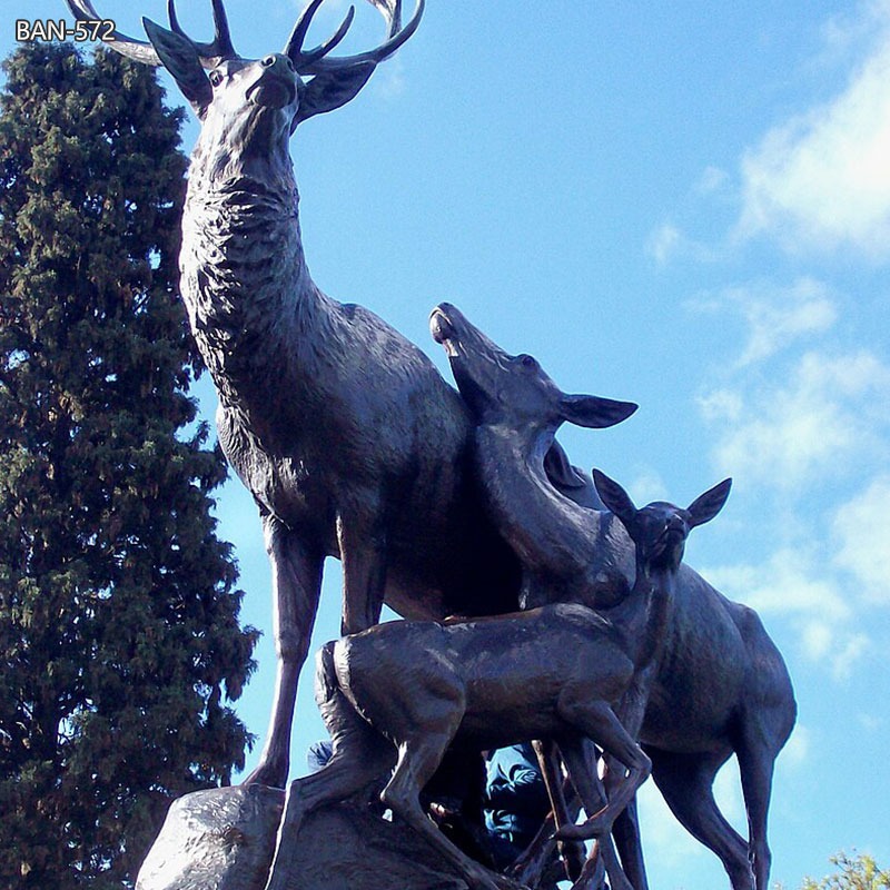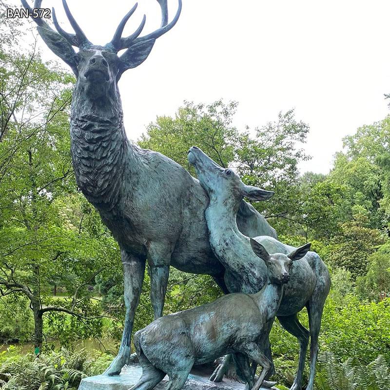 >>This exquisite bronze deer and fawn garden statue captures the majestic stag leading a gentle doe and fawn.