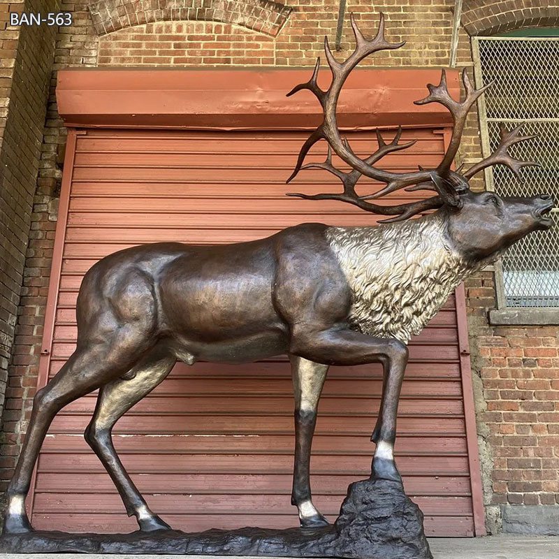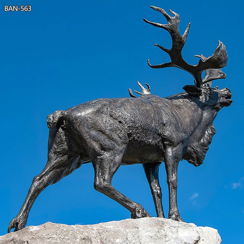 >>The caribou sculpture is crafted using a traditional lost-wax casting technique, preserving every muscle definition, forked antler branches, and the texture of the dense hair on the neck.