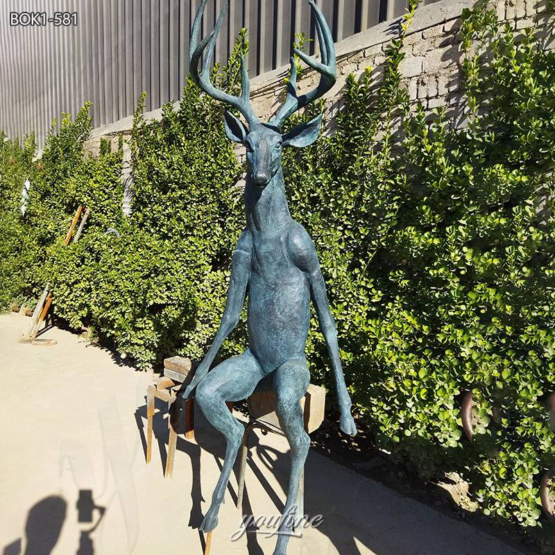 >>This anthropomorphic bronze sitting deer statue will add a touch of whimsy, sophistication, and storytelling to your landscape.