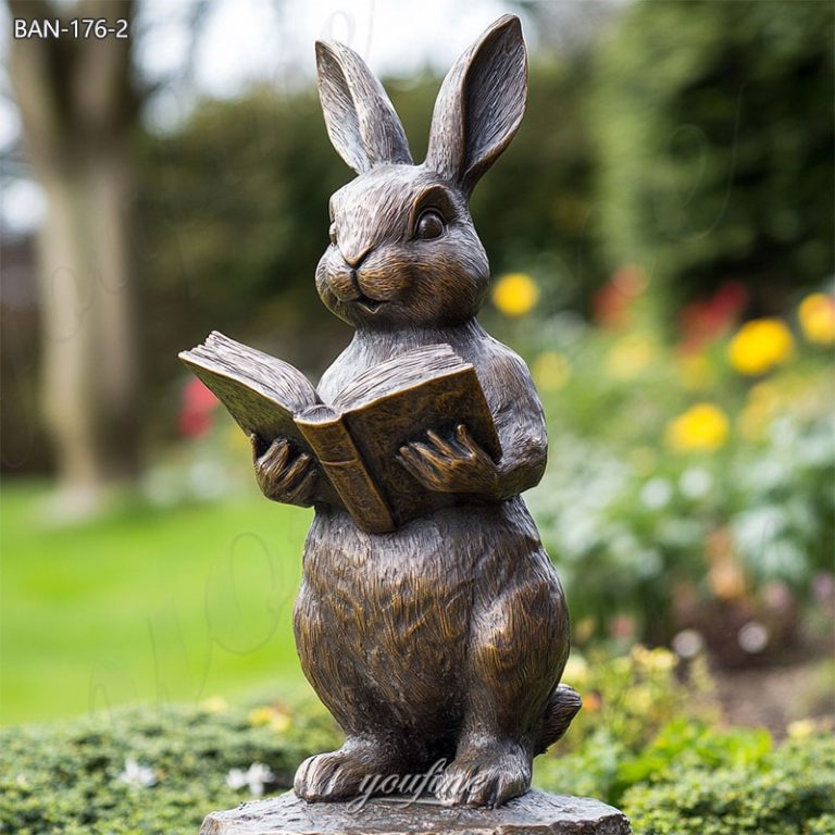 Bronze Reading Rabbit Garden Statue